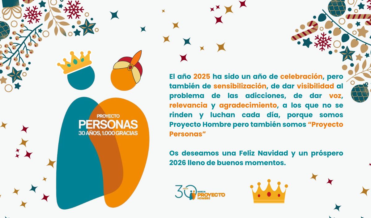 Llevo 12 años como voluntario de Proyecto Hombre Murcia, viviendo la enorme satisfacción de ayudar y acompañar a personas que desean dar un giro a sus vidas. Siempre se recibe más de lo que se entrega. Agradezco a esta Institución la confianza depositada en mí.